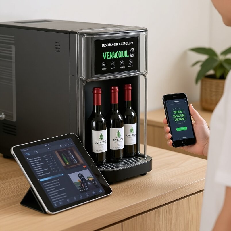 Non puo' mai sostituire la presenza di una persona qualificata e capace , ma sicuramente puo aiutare il personale di sala a far scegliere il vino giusto e allo stesso tempo Spiega al meglio il vino scelto